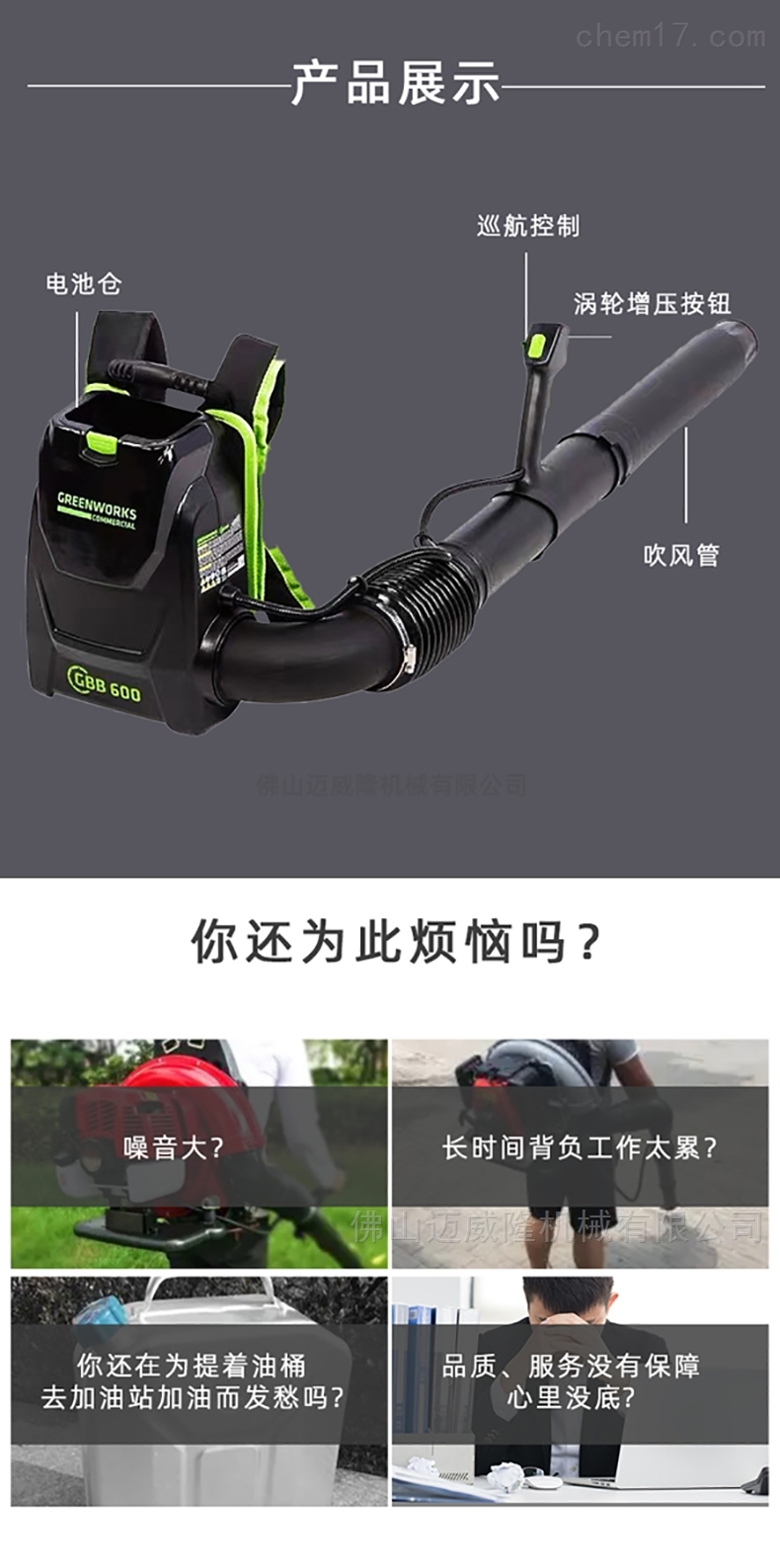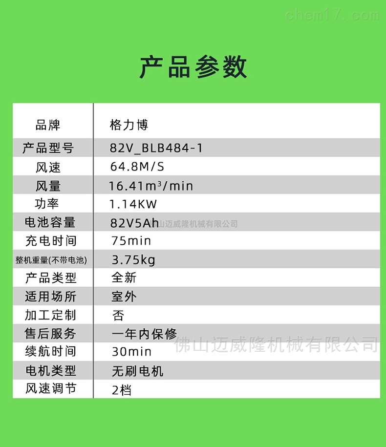 Glebe 82v鼓風(fēng)機blb484-1背負式吹雪機greenworks風(fēng)力滅火器產(chǎn)品參數(shù)品牌:Glebe產(chǎn)品型號:82v\blb484-1風(fēng)速:64.8m/s風(fēng)量:16.41 m3/min功率:1.14kW電池容量:82v,5Ah充電時間:75min機器重量(無電池):3.75kg產(chǎn)品類型:全新使用地點:戶外加工定制:無售后服務(wù):一年保修期:30min電機類型:無刷電機風(fēng)速調(diào)節(jié):2檔